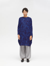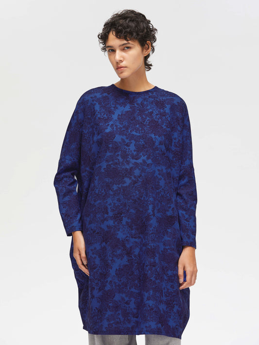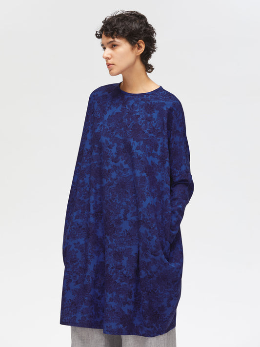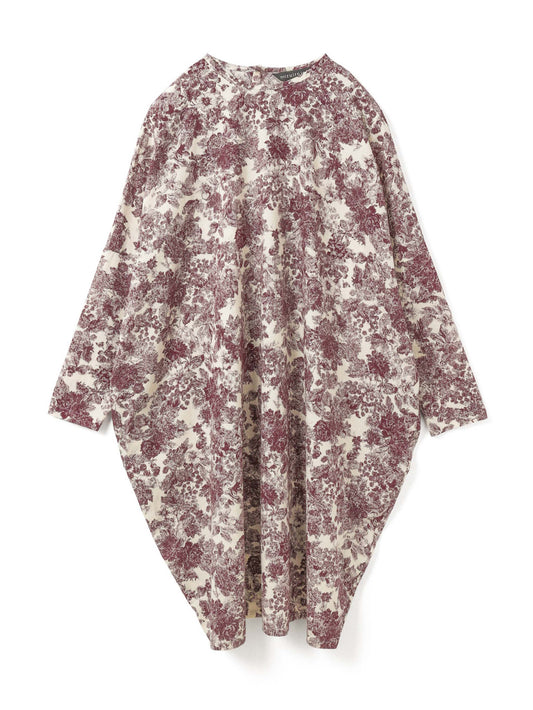 ゴブラン織のように見える重厚なプリントが目を引くワンピース。コクーンなシルエットとワイドな落ち感のあるシルエットが印象的なスタイルを演出します。ミドル丈でボトムスとのコーディネートが愉しい1枚。高密度で丈夫な生地ながら、滑らかで上品な質感が魅力の一枚です。同プリントシリーズでシャツ(3-230107/print basic shirt)とパンツ(3-260079/print easy PT)も展開、セットアップもおすすめです。