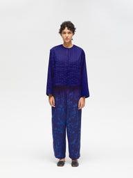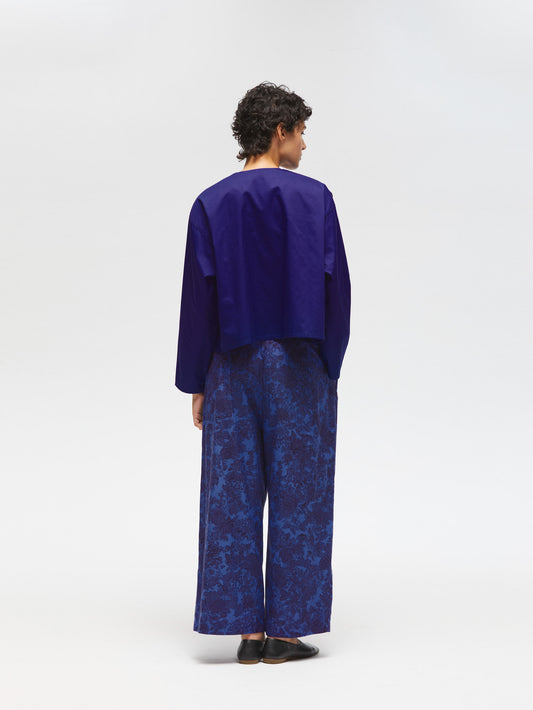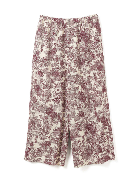 ゴブラン織のように見える重厚なプリントが目を引くイージーパンツ。ほどよくワイドなシルエットで使いやすくコーディネートが映えます。ウエストゴムとドロストコード付きのイージー仕様。高密度で丈夫な生地ながら、滑らかで上品な質感が魅力の一枚です。ベージュのみひざまで裏地付き。同プリントシリーズでシャツ(3-230107/print basic shirt)とワンピース(3-250067/print cocoon wide OP)も展開、セットアップもおすすめです。