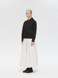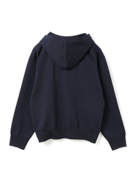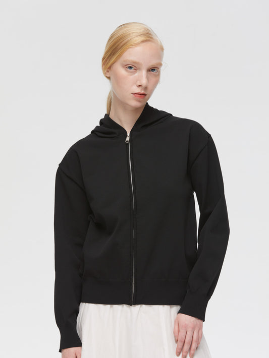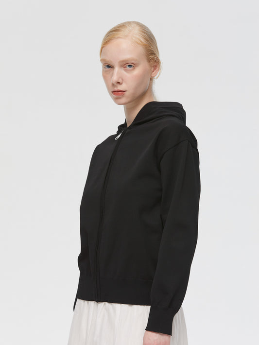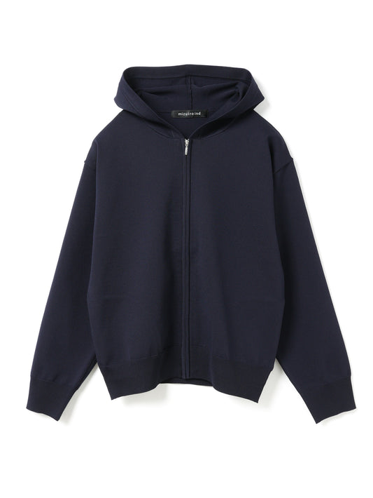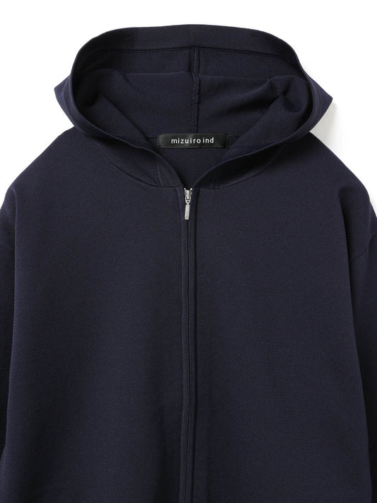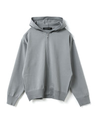シンプルでミニマルなデザインが魅力のZIPパーカー。程よくゆとりを持たせたほぼジャストなシルエットで、アウターとしてもインナーとしてもバランス良く着こなせます。袖口と裾には太めのリブを配し、ブラウジングスタイルも楽しめる仕様。素材には天竺畦編みの合成繊維ニットを使用し、伸縮性に優れ、肌に心地よく馴染み快適な着用感。カットソー感覚で気軽に羽織れる上品な印象も特長です。シワになりにくく、ご家庭でのお洗濯も可能なため、日常使いに最適。サイドポケット付き。同素材で crew neck wide P/O(3-220122)も展開。