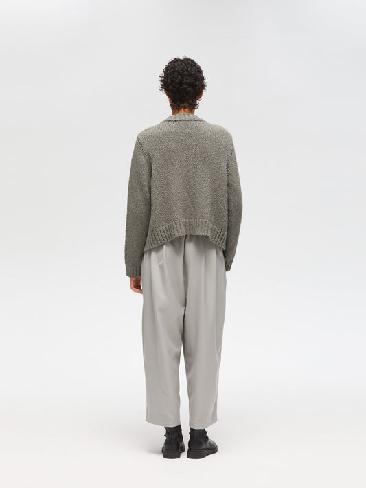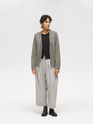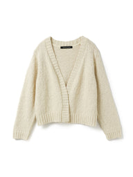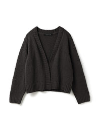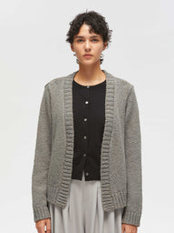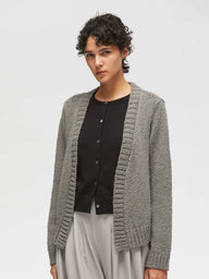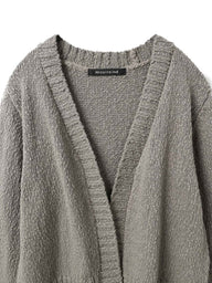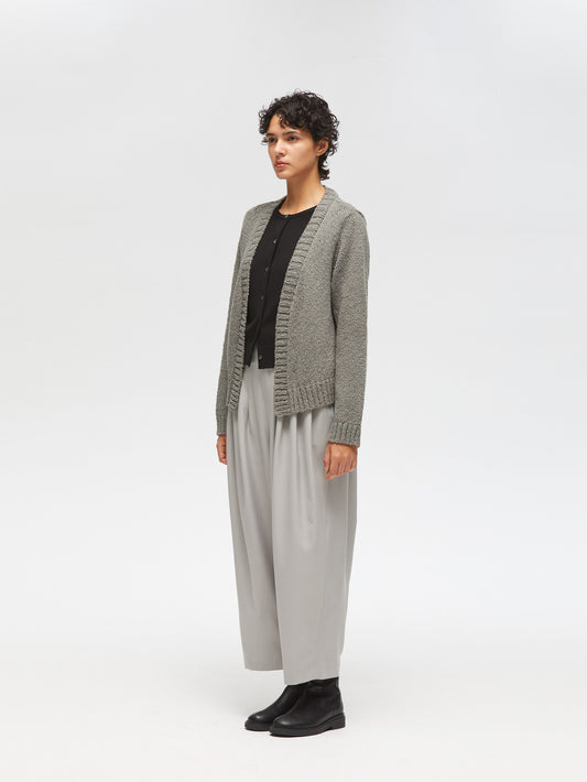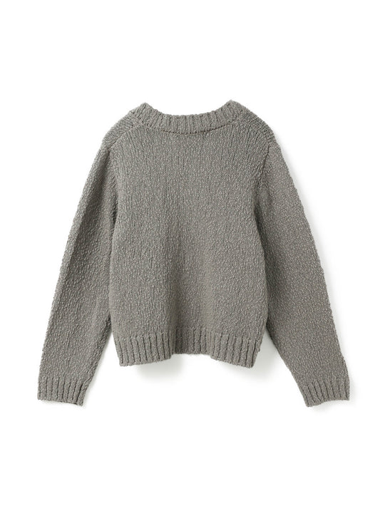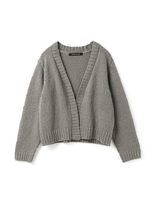 肉厚で表面にぽこぽことしたスラブ感のある風合いが特徴のカーディガンです。ボタンのないオープンスタイルで、軽やかに羽織ることができ、前身頃のリブデザインがさりげないアクセントとして着こなしに奥行きをプラスします。ジャストな丈感でボトムスを選ばず合わせやすく、ほどよくワイドなシルエットがリラックス感と女性らしい柔らかさを演出。素材には適度な厚みのあるコットンニットスラブを使用しており、シーズンを問わず着用できる使い勝手の良さも魅力です。同素材のベスト(3-220118 / Lily-yarn vest)も展開。