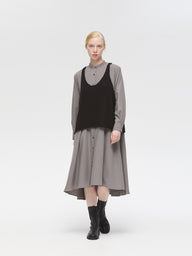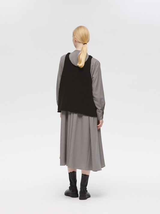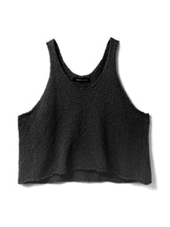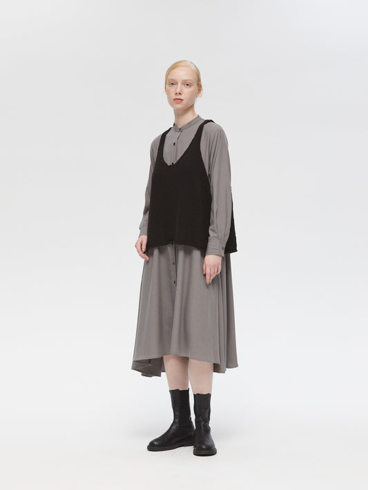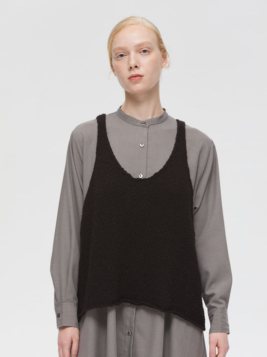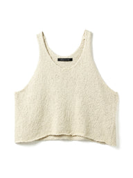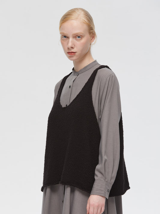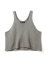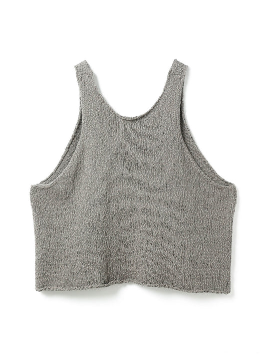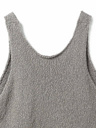 肉厚で、表面にぽこぽことしたスラブ感のある風合いが魅力のベストです。キャミソールをベースにしたデザインで、広めのアームホールが特徴。インナーを選ばず重ねやすく、さまざまなコーディネートで活躍します。裾はメロウ仕上げで、さりげないアクセントに。裾に向かってふんわり広がるフレアシルエットと、ジャストな丈感で、ボトムスを問わず合わせやすいのもポイントです。ほどよくワイドなシルエットが体のラインを自然にカバーし、すっきりと着こなせます。素材は適度な厚みのあるコットンニットスラブで、シーズンを問わず着用できる使い勝手の良い一着です。同素材でカーディガン( 3-220116 / Lily-yarn V neck C/D)も展開。