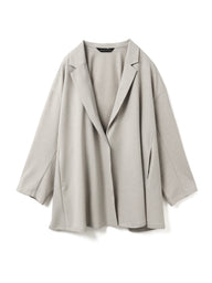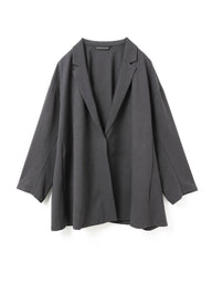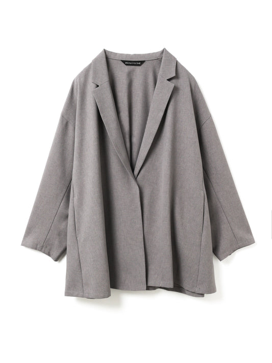 ボタンレスですっきりとしたモード感のあるテーラードジャケットです。シャツ感覚で軽やかに羽織っていただけます。上品に広がるフレアラインが特徴的で、しなやかに流れるシルエットを演出します。シワになりにくい合繊素材を使用しており、肌馴染みがよく上品な光沢と落ち感が魅力です。ウールライクな質感で、秋冬のスタイリングに幅広く活躍します。オケージョンシーンでもお使いいただける上品さを備え、日常から特別なシーンまで、様々なコーディネートで活躍する一着です。裏地なし。同素材のラップライクパンツ(3-260070 / wrap like easy PT)と合わせれば、セットアップとしてもおすすめです。