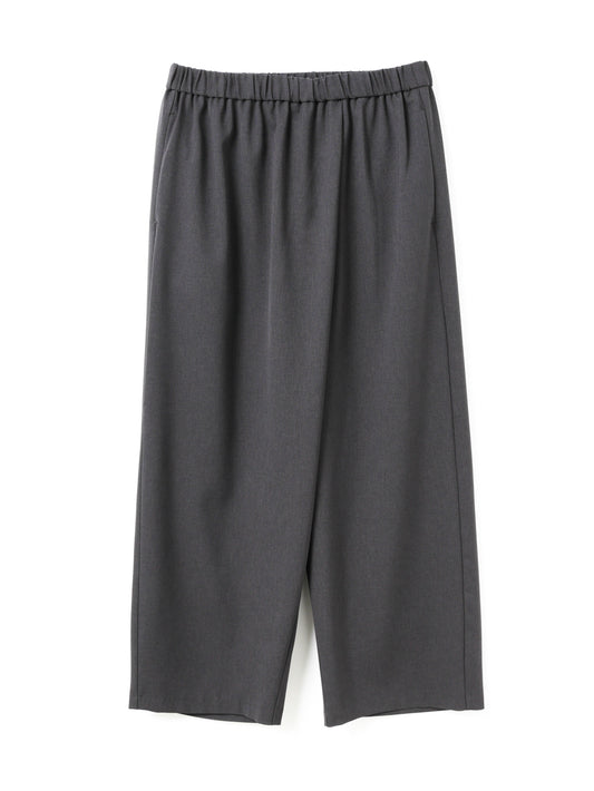 フロントのラップデザインが特徴のイージーパンツ。程よくワイドでルーズなシルエットが、フレアなラインとしなやかな落ち感を生み出します。フルレングス設計で、ウエストは全ゴム仕様のため快適な穿き心地。丈感も多少調節可能です。シワになりにくい合繊素材で、肌馴染みが良く上品な光沢と落ち感が特徴。ウールライクな質感で秋冬のスタイリング使いやすい素材感です。裏地なし。サイドポケット付き。同シリーズのジャケット( 3-230103 / tailored shirt JK)とセットアップもおすすめ。オケージョン・ビジネスシーンでも活躍します。