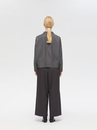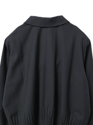 袖口と裾にプリーツ加工をあしらった、やわらかな丸みのあるシルエットが印象的なシャツです。短すぎず長すぎない程よい丈感と、ワイドすぎずジャストすぎないバランスの良いサイジングで、すっきりと上品な着こなしを叶えます。プリーツ加工がさりげないアクセントとなり、シンプルながらも洗練された印象をプラス。フロントボタンの開閉でニュアンスを変えられ、パンツやスカート、ベストやニットとのレイヤードも自在に楽しめます。。ウールライクな光沢感のある上品な素材を使用、ロングシーズン活躍する、きちんと感と女性らしさを兼ね備えた一枚です。同シリーズでベスト(3-230089 / pleats hem V neck vest)、ワンピース(3-250057 / pleats hem N/S OP)も展開。