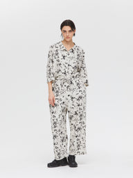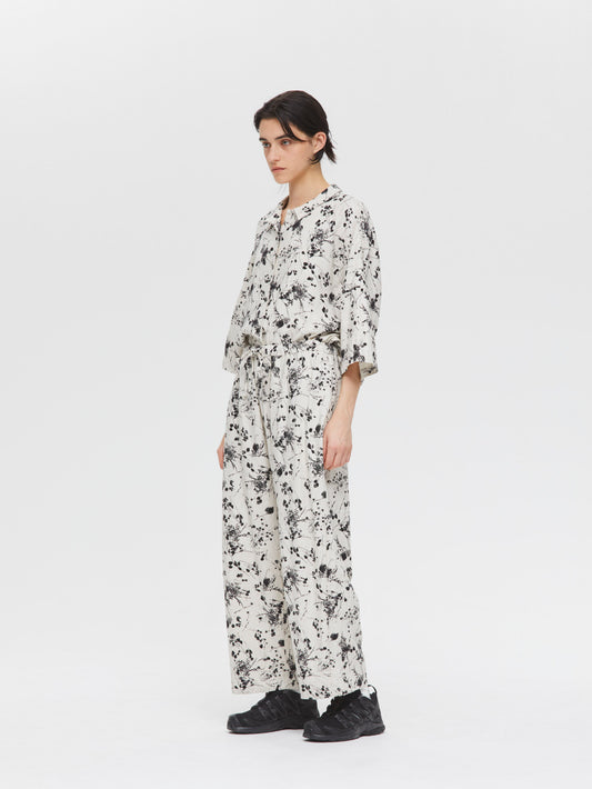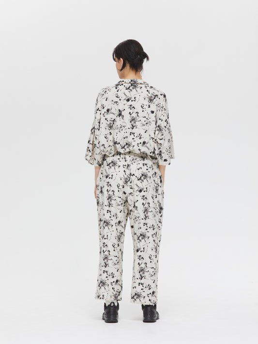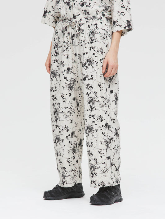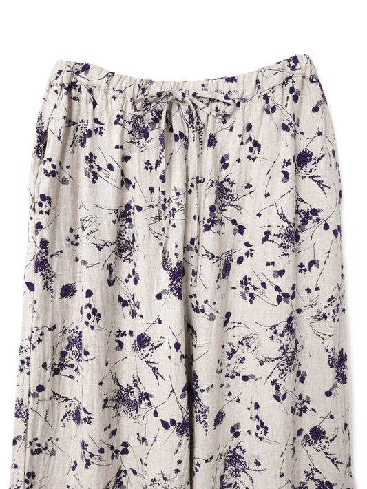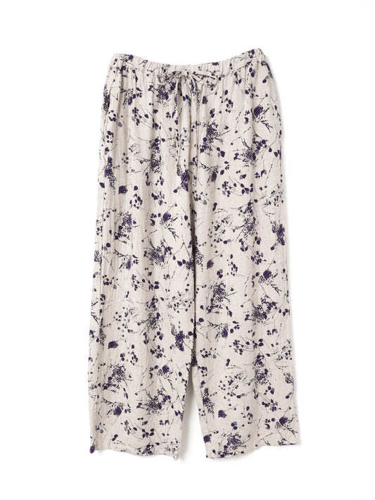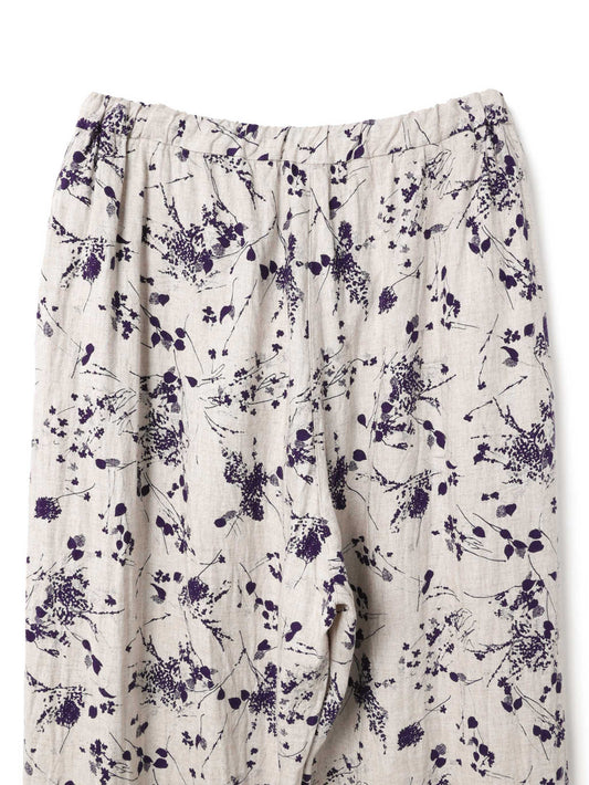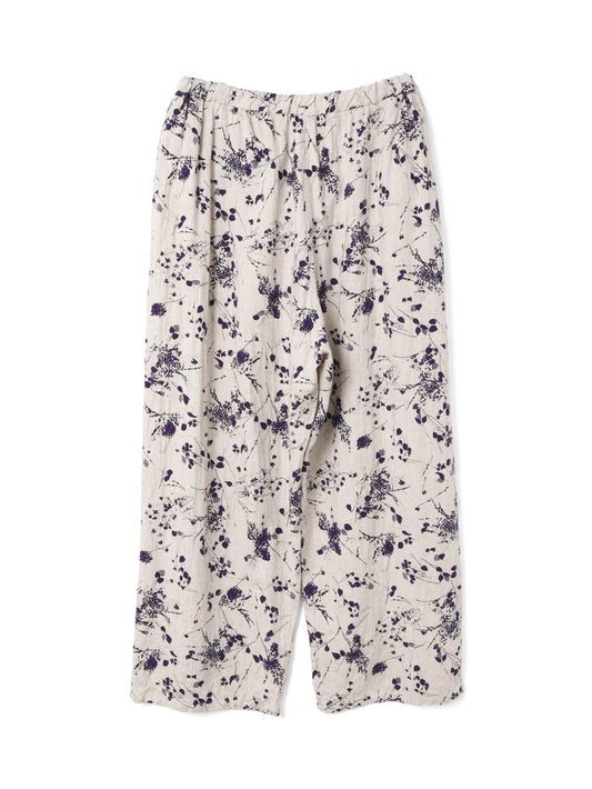 細やかで美しいオリジナルの植物柄が印象的なリネンイージーパンツ。ほどよくワイドなストレートシルエットで、すっきりとした着こなしを叶えます。10分丈設計でさまざまなスタイリングにマッチ。洗いをかけた柔らかなリネン素材にレーヨンをブレンドし、滑らかな肌触りと清涼感をプラスしました。暑い時期まで快適に活躍。同素材でワイドシャツやショートパンツも展開しています。サイドポケット付き。裏地なし。(1-230108 / rayon linen print wide shirt)(1-260080 / rayon linen print short PT)