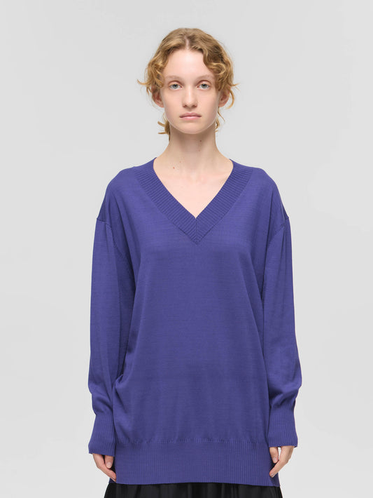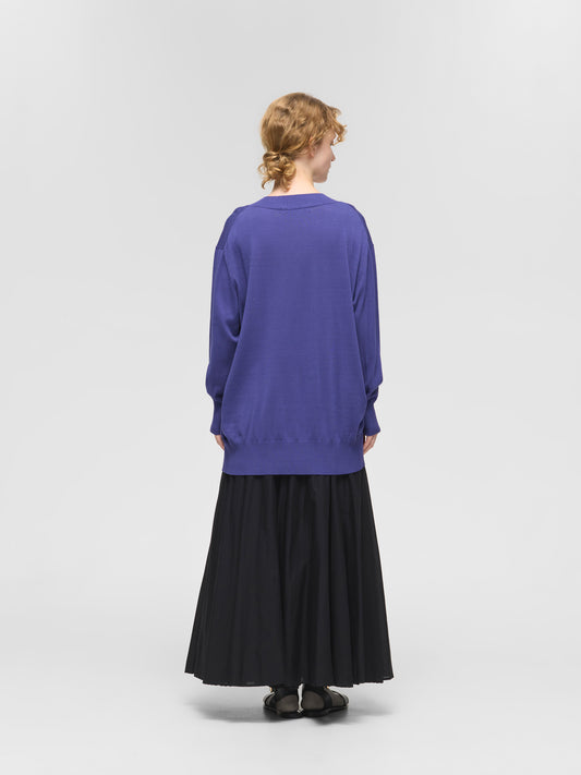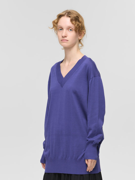 ガス焼きシルケット加工を施したコットン糸を使用し、滑らかで上品な光沢感が魅力のニットです。肌触りが良く、きれいめな印象でデイリーにも取り入れやすい一枚。ほどよく開いたVネックが首元をすっきりと見せ、抜け感のある着こなしを演出します。リラックス感のあるシルエットで体のラインを拾いにくく、快適な着用感もポイント。ご自宅で手洗い可能なウォッシャブル仕様で、扱いやすさにも配慮しています。