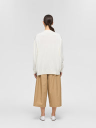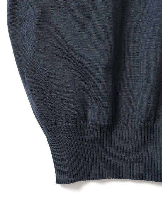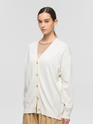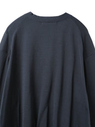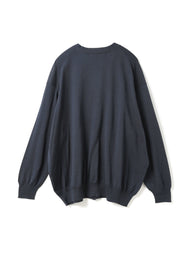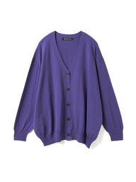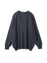 ガス焼きシルケット加工を施したコットン糸を使用し、滑らかさと上品な光沢感が魅力のニットカーディガンです。肌触りが良く、きれいめな印象でデイリーにも取り入れやすい一枚に仕上げました。ほどよく開いたVネックが首元をすっきりと見せ、自然な抜け感のある着こなしを演出します。リラックス感のあるシルエットで体のラインを拾いにくく、快適な着用感もポイントです。ご自宅で手洗い可能なウォッシャブル仕様で、お手入れのしやすさにも配慮しています。薄手で滑らかなコットンニットのため、オールシーズン活躍します。ニット特有のやや透け感がございます。同素材でVネックニット(1-220059 / V neck wide P/O)も展開しています。