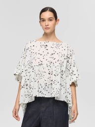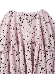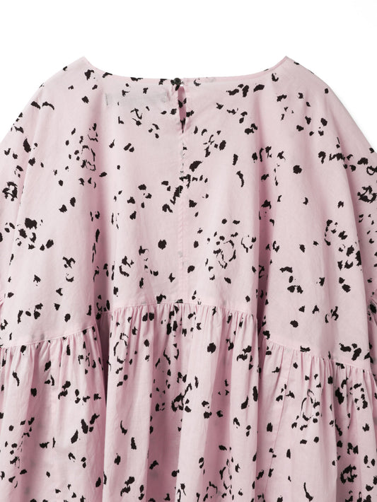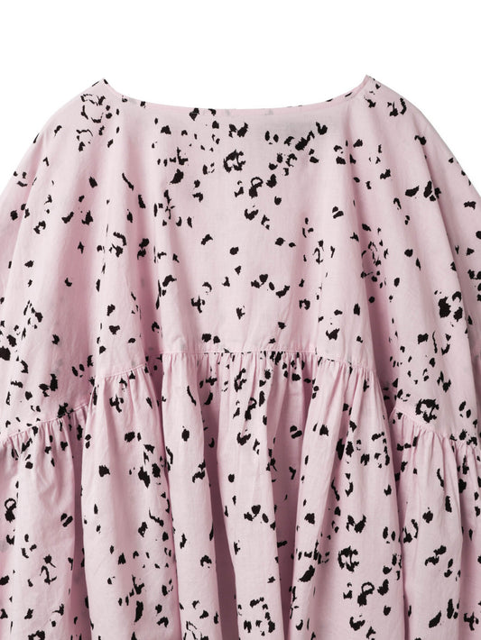 mizuiro indで人気のギャザープルオーバーでアニマル柄をドット調にアレンジした、mizuiro indオリジナルのプリントブラウスをつくりました。主張しすぎない柄表現により、遊び心がありながらも上品な印象に仕上げています。立体感のあるフォルムとプリントが調和し、一枚で存在感のあるスタイリングが完成します。ナチュラルなシアー感のあるコットンローンの軽やかな素材感。モノトーンのアイボリーと春らしいピンクの2色展開です。同シリーズでスタンドカラーコクーンシャツ(1-230133 / print stand collar cocoon shirt)とバックギャザーシャツ(1-230131 / print back gather shirt)も展開。