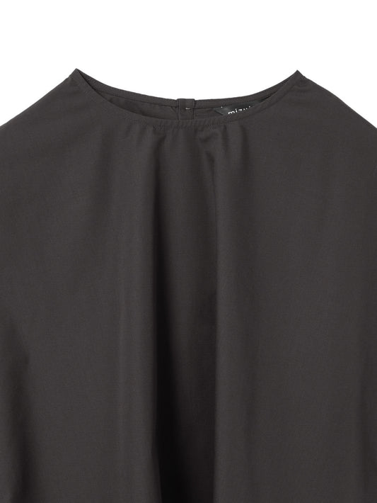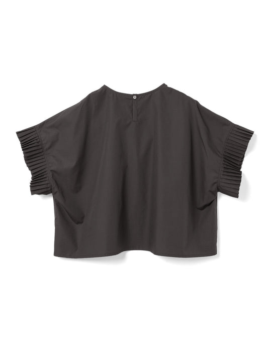袖に施されたプリーツが、動きにあわせて自然に広がり、落ち着いた印象の中にさりげない上品さを添えるブラウスプルオーバーです。ワイドなシルエットで設計、身体のラインが出すぎず、ほどよく力の抜けた装いが叶います。着丈は長すぎず短すぎず、ボトムス問わず合わせやすいアイテムです。ネックの後ろにはボタンを配し、着脱がしやすい仕様。適度な張り感のあるコットン素材を使用し、立体的なフォルムと清潔感のある風合い。無駄のないシンプルな佇まいの中に、控えめな女性らしさが感じられる一着です。