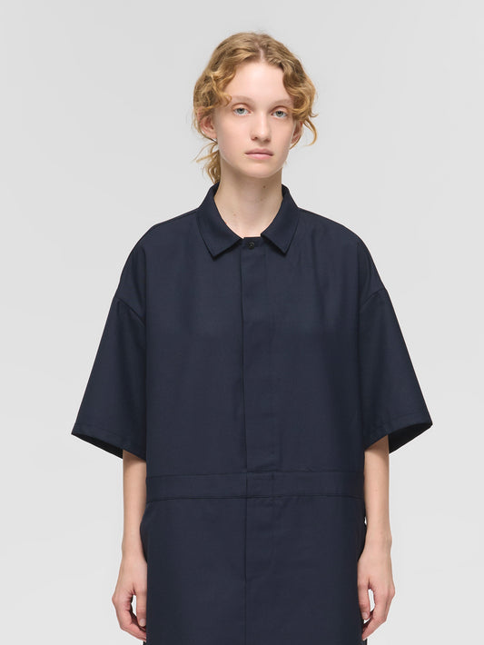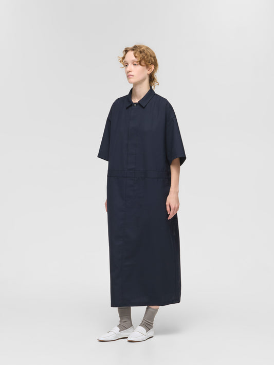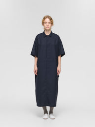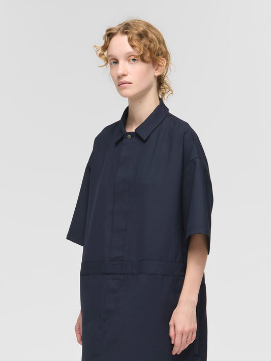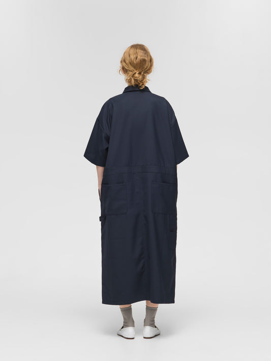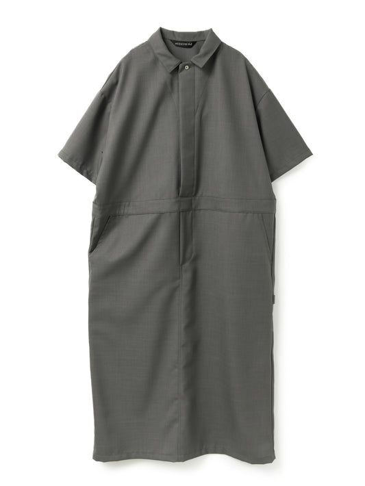 人気のワークデザインを上品に着こなすをテーマに設計したペインターライクワンピースが今季も登場。ワークウェアの定番ペインターオーバーオールをベースにデザインしたオールインワンに見えるワンピース。ツールポケットなどのワークデザインがポイント。第1ボタンより下は比翼仕立てで前を開けて着用も可能。9分丈仕上げで抜け感のあるこなれた大人のスタイルを1枚で演出します。上品に見えるよう合繊素材を使用。落ち感のある素材で動きのあるシルエットが魅力。シワになりにくい加工を施しています。透け感気にせず着用いただけます。サイド・バックにポケット付き。