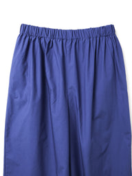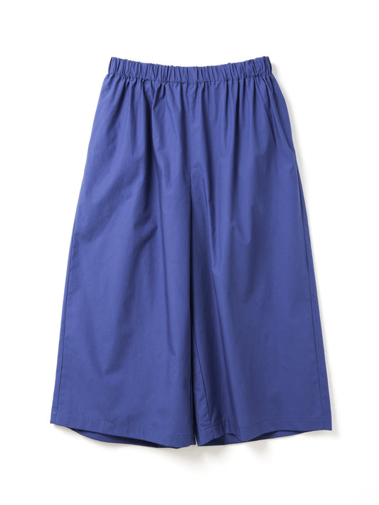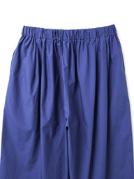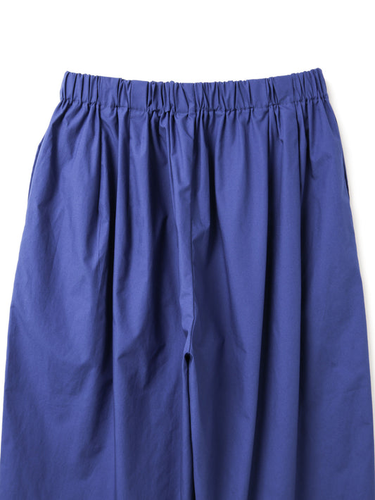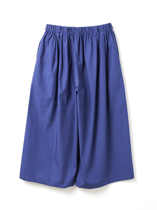 ウエストにギャザーを施し、裾に向かって緩やかに広がるシルエットが印象的なワイドパンツ。歩くたびに自然なドレープが生まれ、軽やかで上品な表情を演出します。ウエストはゴム仕様にドロストコードをあしらい、リラックス感がありながらもサイズ調整が可能。7分丈の設計により足元がすっきりと見え、抜け感のあるスタイリングが完成します。素材にはハリとコシのある40タイプライターを使用し、きれいなシルエットを保ちながら快適な穿き心地を実現。薄手で涼しく、暑い季節までロングシーズン活躍します。サイドポケット付き。同素材のシャツ(1-230128 / box cut shirt)とのセットアップスタイルもおすすめです。