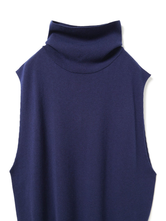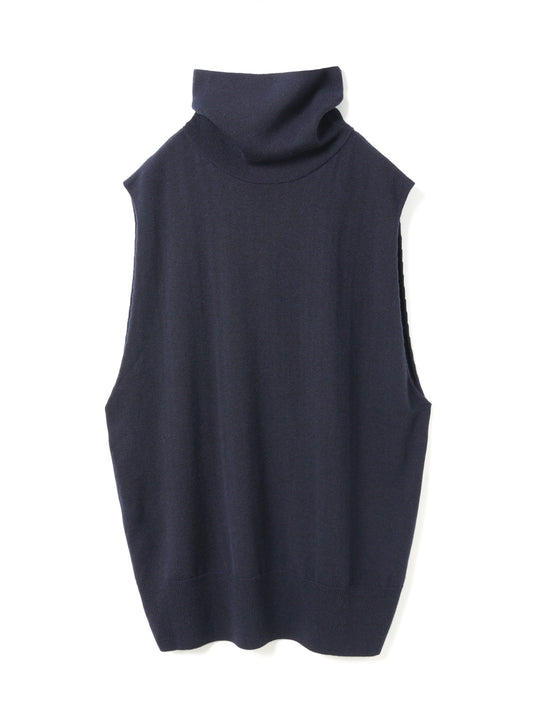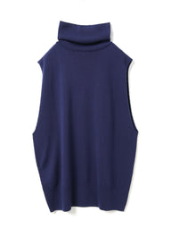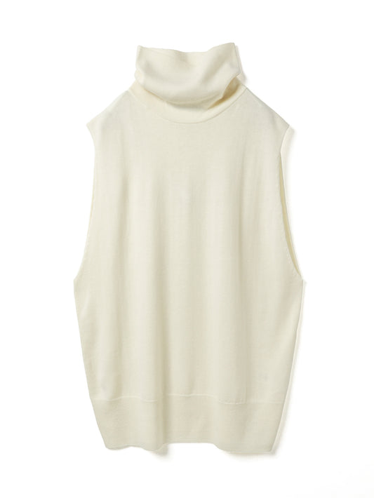 mizuiro indで長く人気のロングベスト。脇の開きを大きく設計しており、ワイドスリーブやドルマンスリーブのアイテムともレイヤードしやすいデザインです。すっきりとしたロング丈のシルエットで、ワンピースや細身のボトムスとの相性も抜群。上質なハイゲージニットが生み出すしなやかな風合いと、すとんと落ちる美しいラインが魅力です。立ち上がりのあるハイネックが首元まで暖かく包み込み、温かく着用いただけます。肌触りなめらかなハイゲージニット素材を使用し、上品な印象に仕上げました。ウール混でほどよい温かみがあり、ロングシーズン活躍する一枚です。同素材でコクーンワイドベスト(4-220104 / cocoon wide vest)も展開。