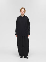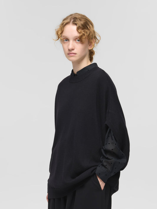 mizuiro indで長く愛される、コクーンシルエットのワイドベスト。ふんわりと丸みを帯びた女性らしいシルエットが印象的で、ワイドスリーブやドルマンスリーブのアイテムとのレイヤードも自由自在。上質なハイゲージニットが生み出すしなやかな風合いと、自然に落ちる美しいラインが、シンプルながら存在感のあるスタイルを演出します。肌触りのなめらかなウール混素材で、暖かさと上品さを兼ね備え、寒い季節も心地よく着られるロングシーズン活躍の一枚。一枚で着映えし、コーディネートにさりげない華やかさを添えてくれる、mizuiro indならではのベストです。同素材でハイネックロングベスト(4-220103 / rib high neck vest)も展開。