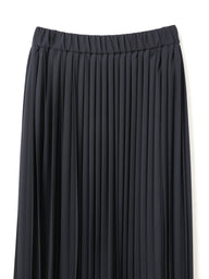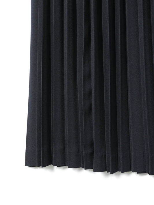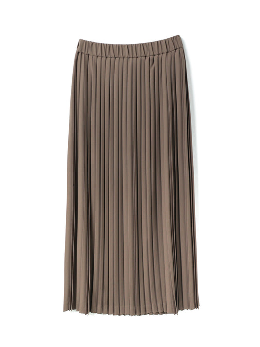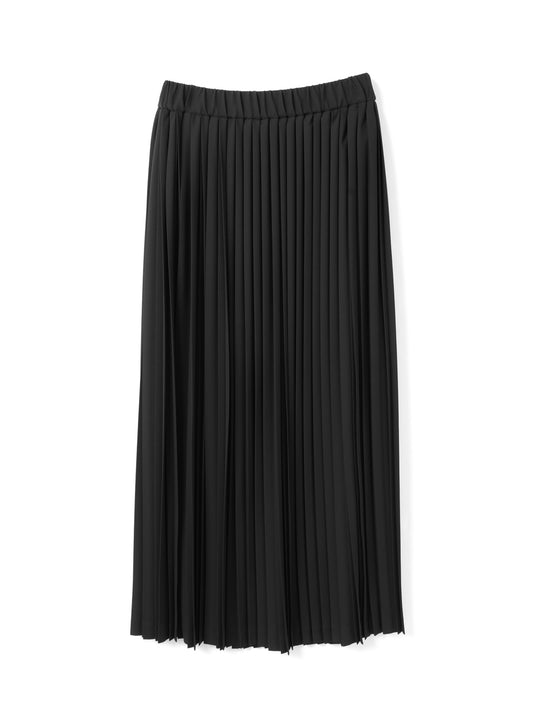 プリーツの中にさらにプリーツを施した、ダブルプリーツ仕様のスカート。細かいプリーツが歩くたびに流れるように揺れ、軽やかで動きのある美しいスタイルを演出します。ウエストは全ゴム仕様で、楽な穿き心地を叶えます。軽やかなジョーゼット素材とシボ感のあるクラシカルな生地が、上品で華やかな印象を添え、オケージョンシーンでも活躍します。裏地はなく透け感があるため、ペチコートやボトムスとの組み合わせでオールシーズンコーディネートを楽しめます。身長152cmでハイウエスト気味に穿くとくるぶしが隠れる丈感。床に付くほどの長さではないので安心して着用できます。身長160cmでは足首が見える丈感です。