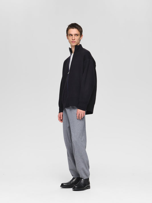 TOPS:double face zip front wide knit
