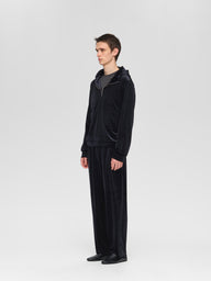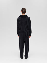 すっきりとしたシルエットで上品に穿けるイージーパンツ。光沢感のある滑らかなベロア素材を使用し、動くたびに表情が生まれる華やかな一本です。ほどよいリラックス感とエレガントさを併せ持ち、デイリーからきれいめスタイルまで幅広く活躍します。同シリーズジップパーカー( 3-510000/velour zip hoodie)とセットアップもおすすめです。