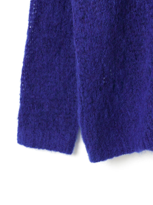 毛足の長いモヘアが寒い季節のコーディネートに温かなニュアンスをプラスするVネックカーディガンです。すっきりとしたVネックデザインでバランスよく着こなせ、ほどよい透け感のある編み地がレイヤードスタイルにも活躍。ブルーとブラウンはMIX感のある素材で、奥行きのある表情を楽しめます。今季らしい質感がトレンド感を引き立てる一枚です。同素材でハイネックベスト(3-520002)も展開。