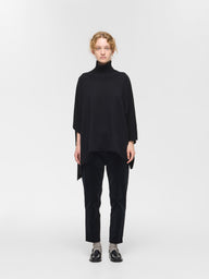 Popular cape knit. The open side design makes it easy to layer with shirts and dresses, and can also be worn as an outer layer. Impressive bottle neck design. The warm, simple yet dynamic drape silhouette that extends all the way to the neck creates a fashionable and atmospheric look. Warm wool blend knit material. The light gauge fabric makes it easy to wear for many seasons.Hand washingIt's possible. The series also includes short cardigans (4-220105 / crew neck short C/D) and long cardigan dresses (4-220102 / HG stand collar OP).