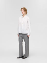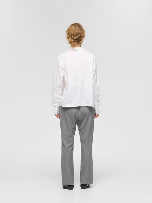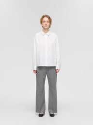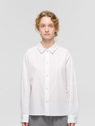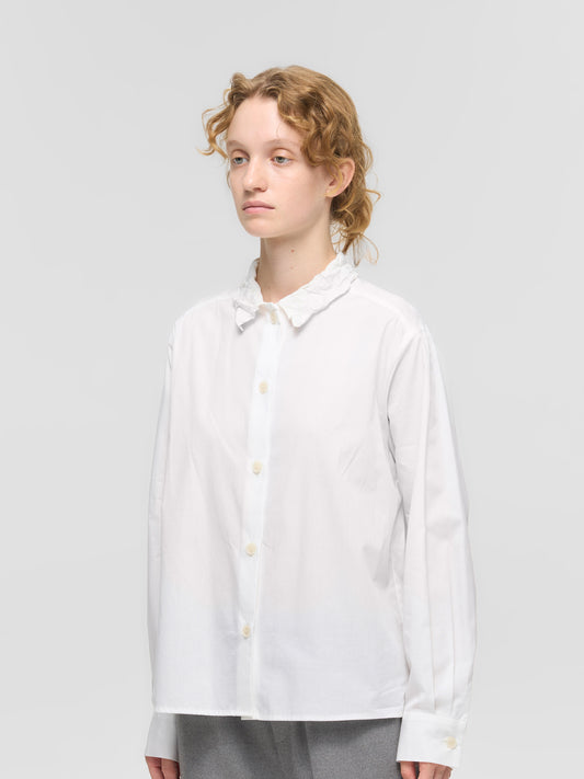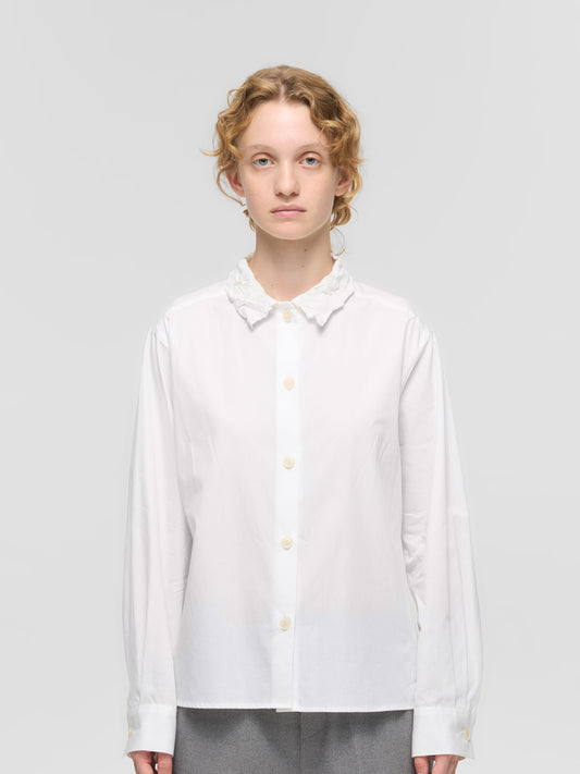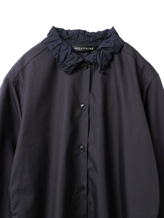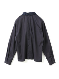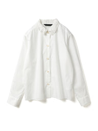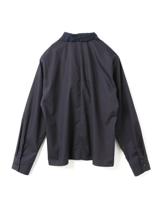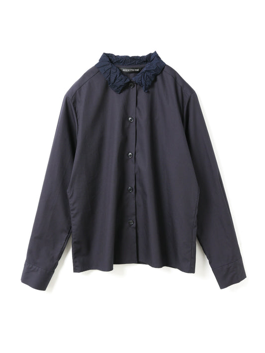 This shirt has an impressive collar made of synthetic material with a washer finish. The body part is made of cotton material with just the right amount of tension, creating a three-dimensional silhouette. Compact sizing and littleWaistThe shape is incorporated into the design to enhance an elegant and feminine style. The combination of different materials creates a subtle accent, and the design looks great on its own. It is easy to match with both casual and neat looks, and can also be used as an inner layer for a jacket. This item is suitable for a wide range of occasions, from everyday use to going out.