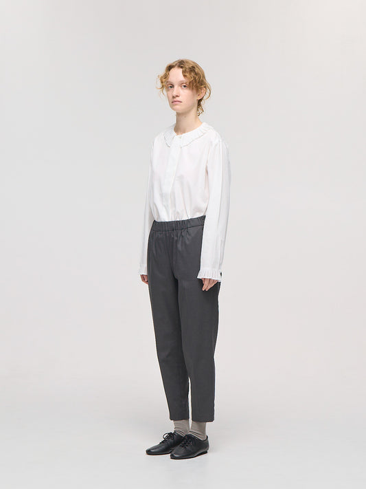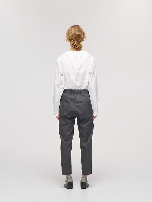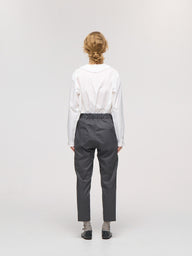 The tapered silhouette and center press create a clean and beautifully streamlined line. Designed with a slightly cropped 9/10 length, they give a light and effortless feel to any outfit.