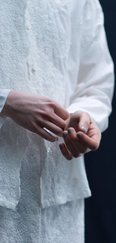 double collars patterned shirt | 3-530011-w