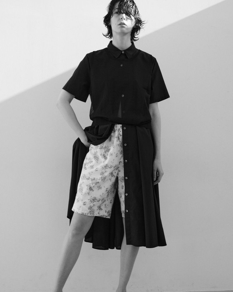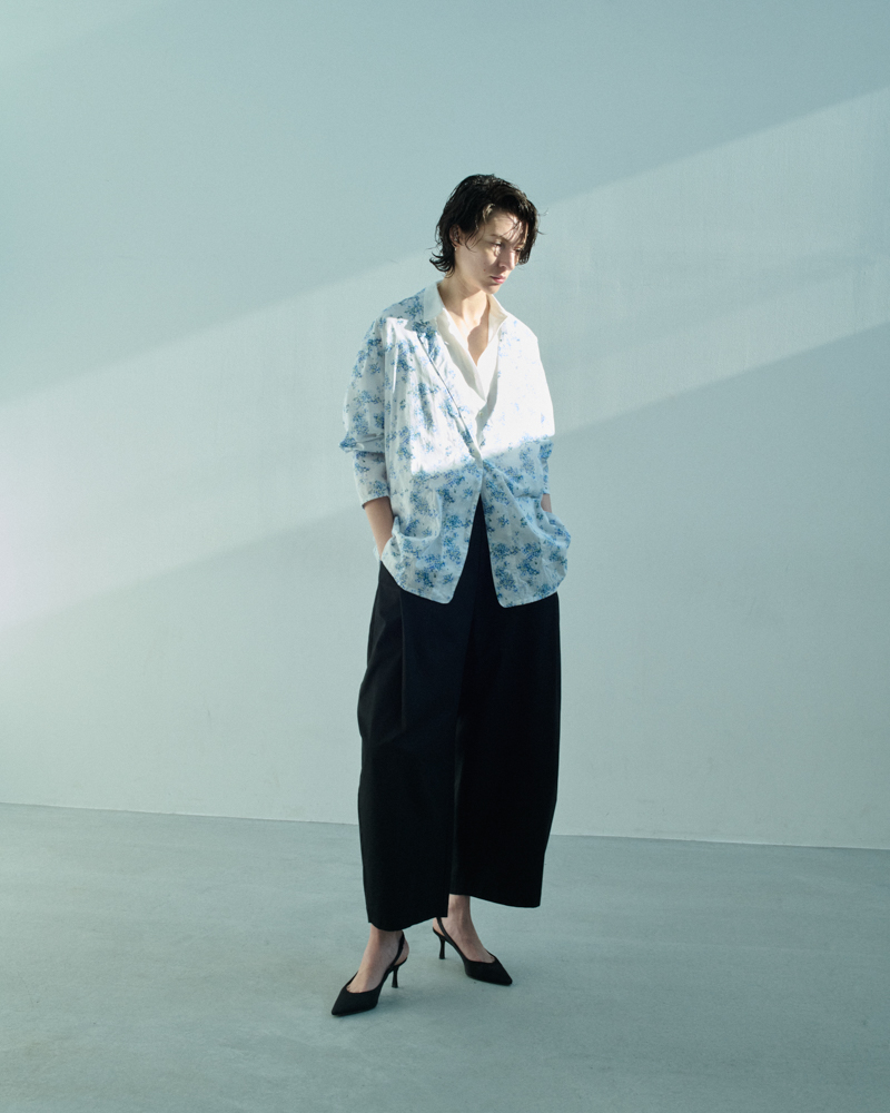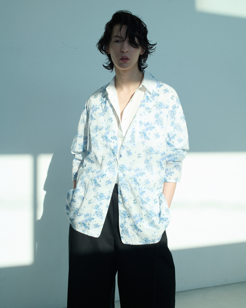 flower print wide shirt JK