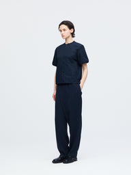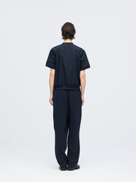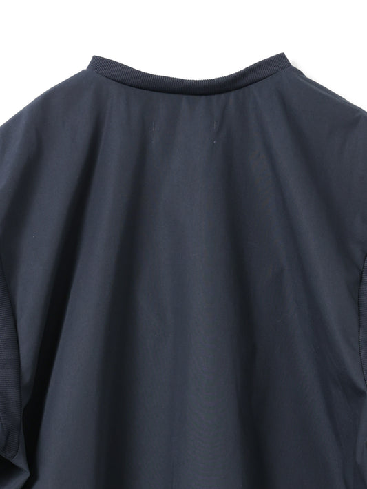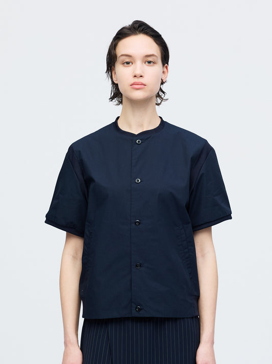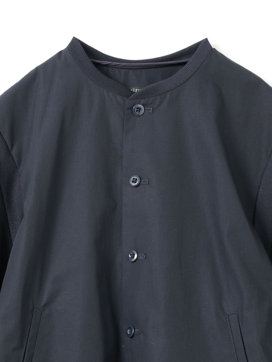 バーシティジャケットからインスピレーションを得た、リブカラーが印象的なハーフスリーブシャツです。リブ編みの襟元と袖口が新鮮なアクセントとなり、スポーティな要素をさりげなく取り入れたデザイン。シンプルな無地でありながら、ディテールの効いた一着に仕上げています。ほどよくゆとりのあるシルエットで、肩まわりから身幅にかけてリラックス感のあるフォルム。程よい着丈でボトムスとのバランスが取りやすく、タックインしてもアウトでも着こなせます。リブ仕様の襟と袖口が身体にほどよくフィットし、快適な着心地を実現。一枚でさらりと着ても、レイヤードスタイルとしても活躍し、カジュアルにもきれいめにも合わせやすく、日常のスタイリングに自然と馴染みます。素材にはコットン100%を使用し、さらりとした肌触りと通気性の良さが魅力。季節の変わり目から夏まで長く活躍します。同じリブカラーデザインでストライプ柄(1-530029 / stripe half slv rib collar shirt)も展開しています。