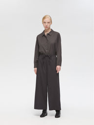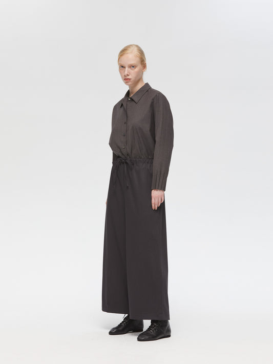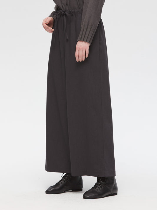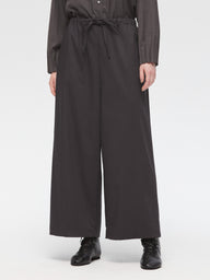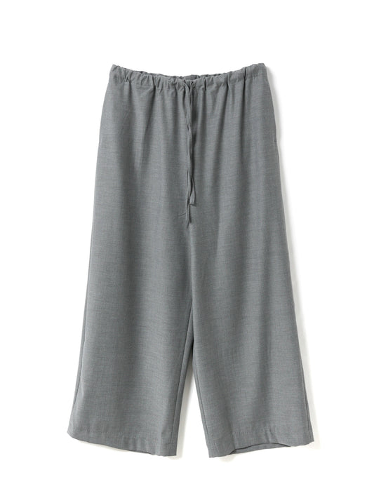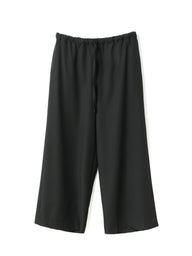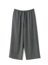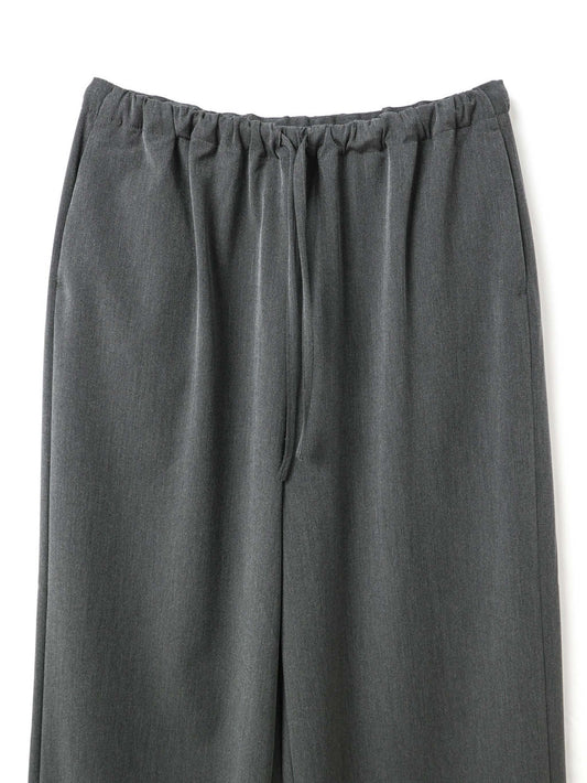 スラックスのようなすっきりとしたデザインで、フルレングスのストレートなシルエットが印象的なパンツです。ワイドなラインながらも落ち感があり、リラックスしたイージースタイルで着用いただけます。ウエストはゴムとドロストコードで調整できる仕様で、シンプルなデザインが全体をすっきりと見せ、どんなトップスとも自然に馴染みます。ベーシックながら存在感のある一着で、デイリーからきちんと見せたいシーンまで幅広く活躍。合わせるアイテム次第で、きちんと感のあるスタイルにもカジュアルな着こなしにも対応でき、長く愛用いただけます。サイドポケット付き。裏地なし。