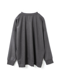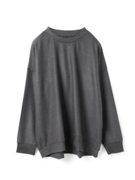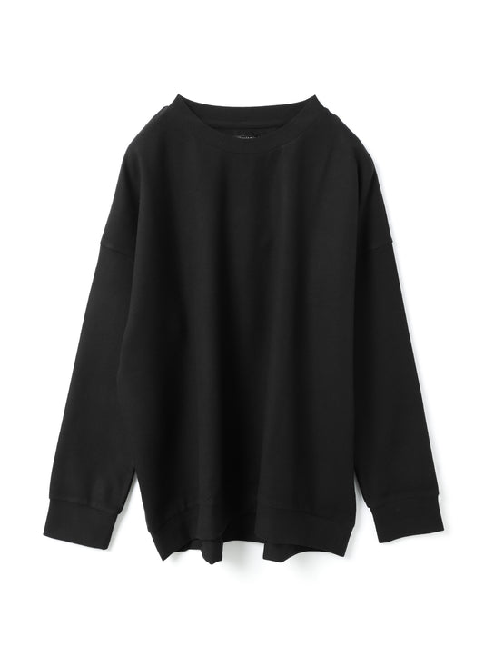 浅めのクルーネックと落ち感のあるワイドシルエットが、抜け感と上品さを兼ね備えたクルーネックワイドトップス。前後差のあるラウンドヘムがレイヤードスタイルを引き立て、さりげない立体感を演出します。スーツライクな微起毛素材を使用しており、温かみときれいめな印象を両立した一枚です。同素材のイージーパンツ(3-560002/center press easy slacks)とセットアップもおすすめ。