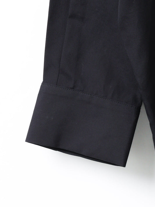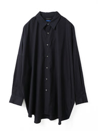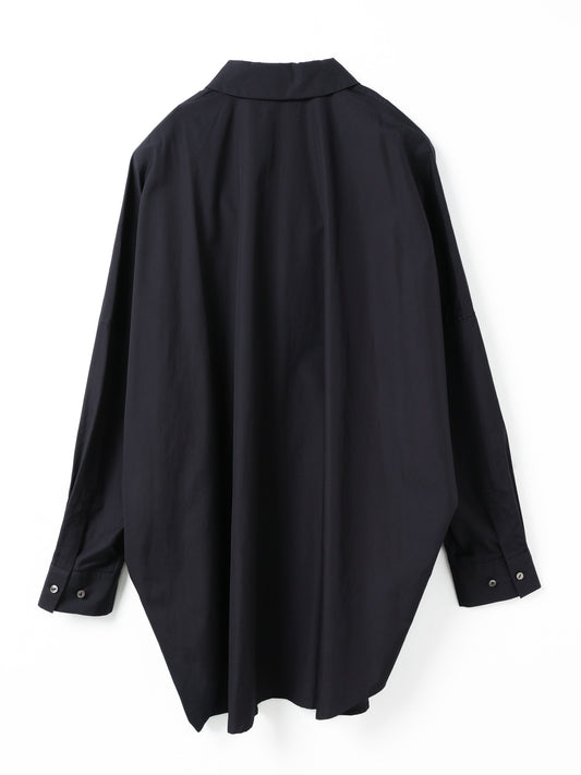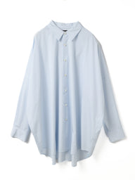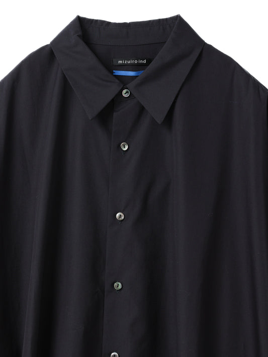 ミズイロインドで人気の型をベースにしたワイドシャツ。ゆったりとしたシルエットとフレアなスタイルが印象的で、着るだけでこなれた雰囲気を演出します。クリーンで張りのあるコットンシャツ素材を使用し、上品さと軽やかさを兼ね備えた一枚です。