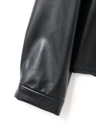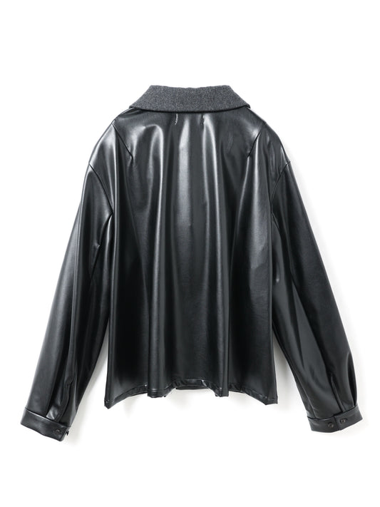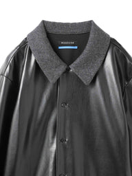 ベーシックなシャツをベースにデザインした、軽やかに羽織れるフェイクレザージャケット。衿には温かみのある別起毛素材をあしらい、シーズンらしいニュアンスと優しい表情をプラスしました。柔らかく肌馴染みのよいフェイクレザーを使用しているため、見た目のハードさとは裏腹に着心地はしなやか。普段のコーディネートに取り入れやすく、スタイリングをさりげなくアップデートしてくれる一着です。
