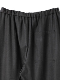 すっきりとしたシルエットとセンタープレスできちんと感を演出するイージースラックス。ウエストはゴム仕様で、ストレッチ素材を使用しているため快適な履き心地を実現。リラックス感ときれいめスタイルを両立したデイリーに使いやすい一本です。スーツライクな微起毛素材を使用しており、温かみときれいめな印象を両立した一枚です。同素材の(3-510001/crew neck wide top)とセットアップもおすすめ。