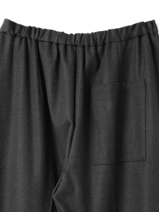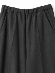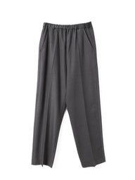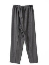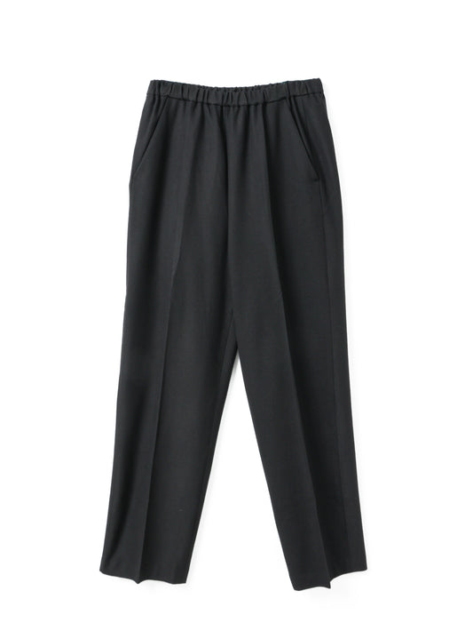すっきりとしたシルエットとセンタープレスできちんと感を演出するイージースラックス。ウエストはゴム仕様で、ストレッチ素材を使用しているため快適な履き心地を実現。リラックス感ときれいめスタイルを両立したデイリーに使いやすい一本です。スーツライクな微起毛素材を使用しており、温かみときれいめな印象を両立した一枚です。同素材の(3-510001/crew neck wide top)とセットアップもおすすめ。