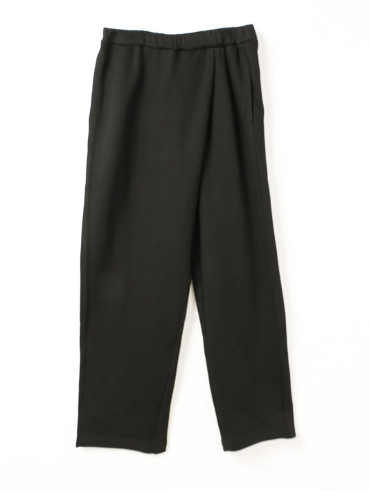 フロントの巻きスタイルがアクセントになったラップライクイージーパンツ。すっきりとしたシルエットで、カジュアルながらもきちんと感のある印象に仕上げました。柔らかなコットンスウェット素材を使用しており、履き心地は軽やかでリラックス感のある一枚です。裏起毛でとてもあたたかな1枚です。