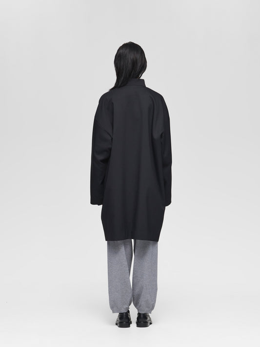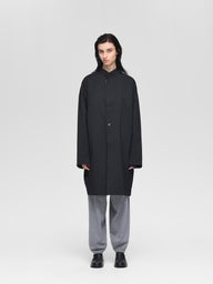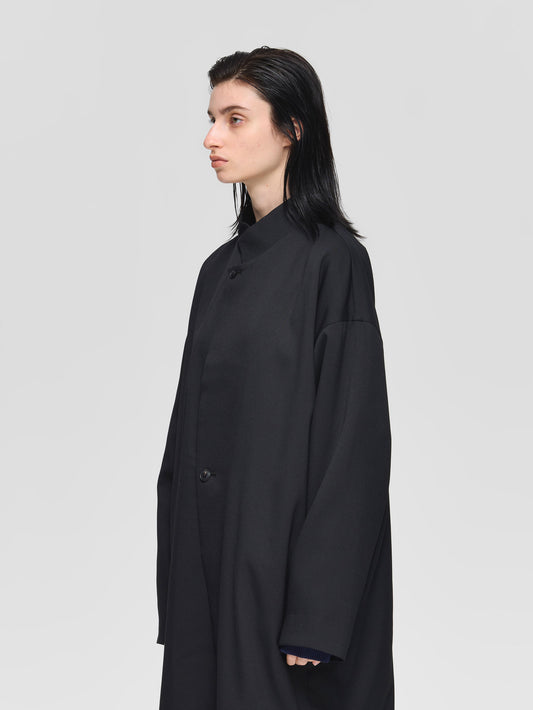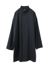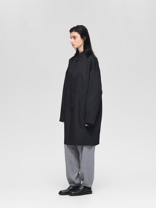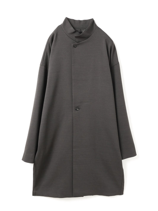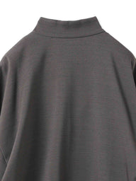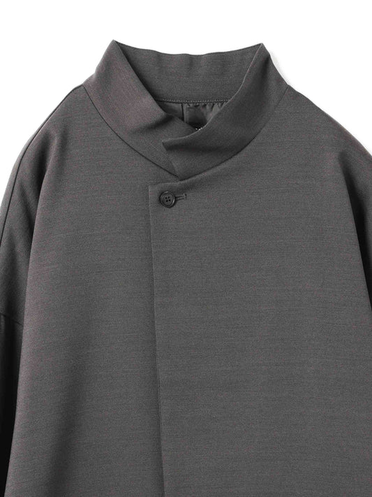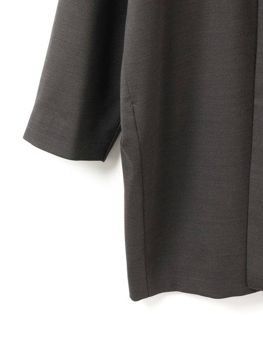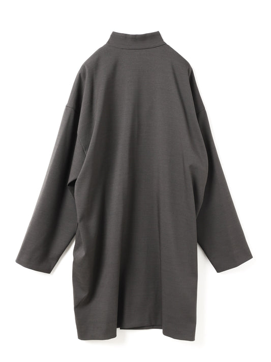 すっきりとしたスタンドカラーが凛とした印象のミドル丈ジャケット。ミニマルなデザインで、ボタンをひとつ開ければテーラード風のスタイルにもアレンジ可能です。ウール混素材で暖かく着用いただけます。グレーは横糸にMIX感のあるニュアンス生地を使用。裏地付きで、サイドポケットも備えています。