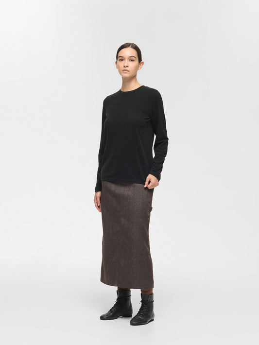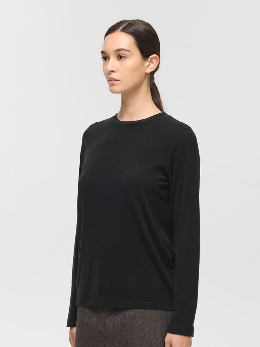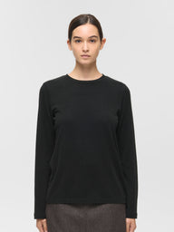 寒い季節に頼れる、ミニマルなデザインが魅力のクルーネックプルオーバーです。3層構造の起毛素材を使用しており、柔らかな肌触りと高い保温性を両立。ジャストなサイジングで身体に自然にフィットし、インナーとしても使いやすく、重ね着してもすっきりとした印象に。すっきりとしたクルーネックで1枚でも使いやすくコーディネートで活躍。日常使いはもちろん、アウトドアやアクティブなシーンでも快適に着用できる一着です。同素材でフードタイプ(4-210033 / three layered hooded P/O)も展開。