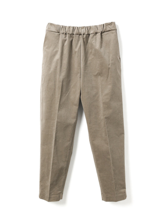 冬の定番素材であるコーデュロイを使用したセンタープレスパンツです。細畝のコーデュロイ生地は、温かみがありながらも上品でトラッドな印象に。すっきりとした細身のテーパードシルエットが、大人のカジュアルスタイルを引き立てます。股上はやや深めに設定し、気になるウエストまわりをすっきりと見せてくれるデザイン。ウエストにはゴムを使用し、快適な穿き心地を実現しています。足元がきれいに見える9分丈のデザインで、ソックスやシューズとのコーディネートも楽しめます。レイヤードにも取り入れやすい、mizuiro indらしい定番の一本です。サイドポケット付き。