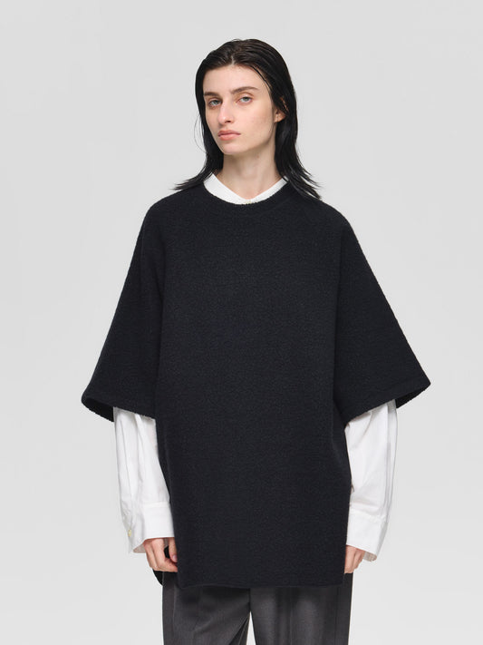 這款插肩袖上衣以蓬鬆柔軟的毛絨材質展現搶眼存在感。半袖的設計比例非常適合疊穿,拓展了穿搭的可能性。落肩設計營造順滑垂感,搭配柔軟溫暖的毛絨材質,輕盈感與適度蓬鬆感完美共存。