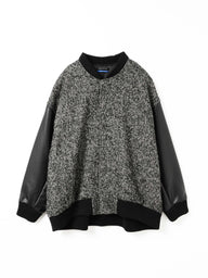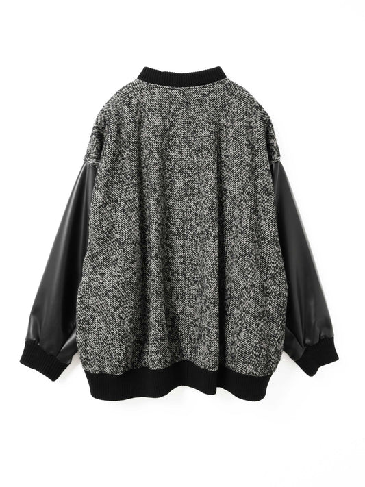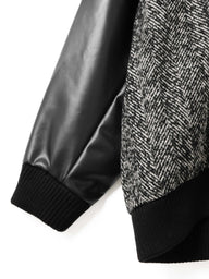 (本体)ウール64% ポリエステル24% ナイロン7% アクリル3% レーヨン2%(袖)合成皮革(表面:ポリウレタン100%/ベース:ポリエステル92% ポリウレタン8%) (裏地)ポリエステル100% (リブ)アクリル60% ウール35% ポリウレタン5%