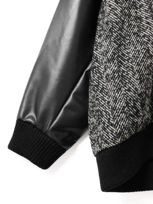 袖子採用仿皮革材質,將經典美式休閒的 varsity jacket 風格提升為時尚摩登感。